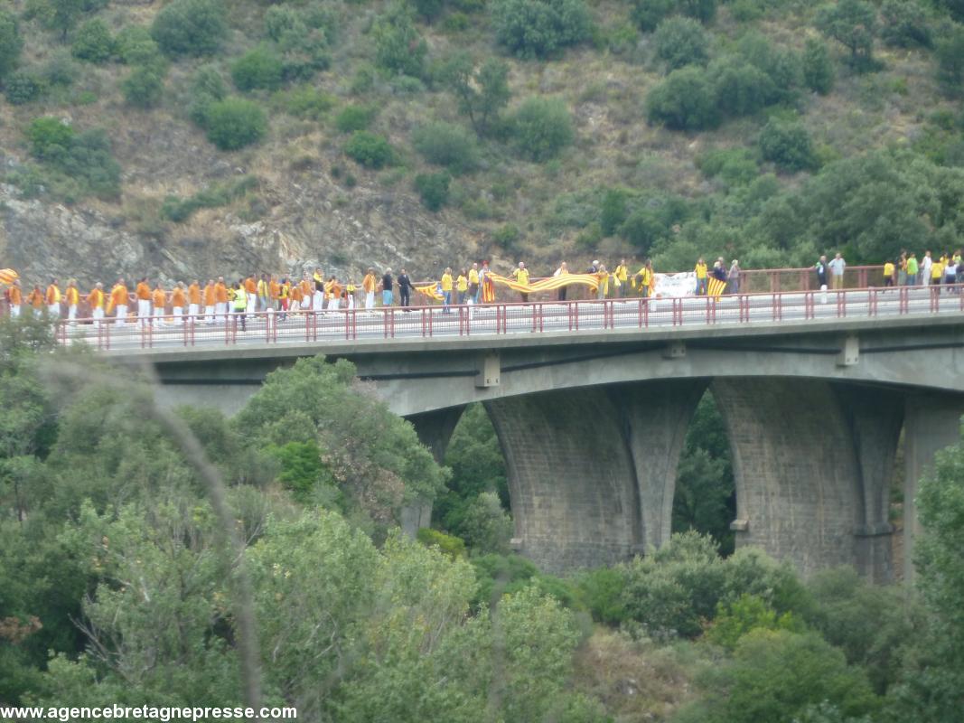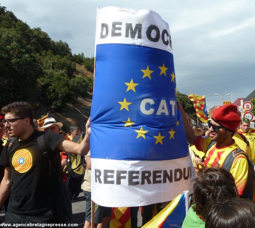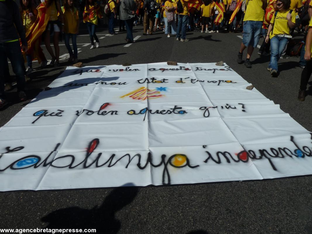 Ce 11 septembre 2013, 1,6 million de Catalans se sont donné la main sur plus de 400 km à travers toute le Catalogne. L'Assemblea Nacional Catalana, soutenue par 400 collectivités, veut obtenir l'indépendance à court terme et donc forcer la main du gouvernement catalan. Celui-ci s'en tient à la mise en place d'un processus souverainiste prévoyant un référendum non officiel en 2014. Artur Mas, président de la Généralité, qui ne veut pas risquer une confrontation ouverte avec le très espagnoliste pouvoir madrilène et doit tenir compte du fait qu'un des partis de sa coalition est catalanes te non indépendantiste avait reçu, le 11 septembre, les organisateurs, approuvé la manifestation, mais refusé d'y participer.