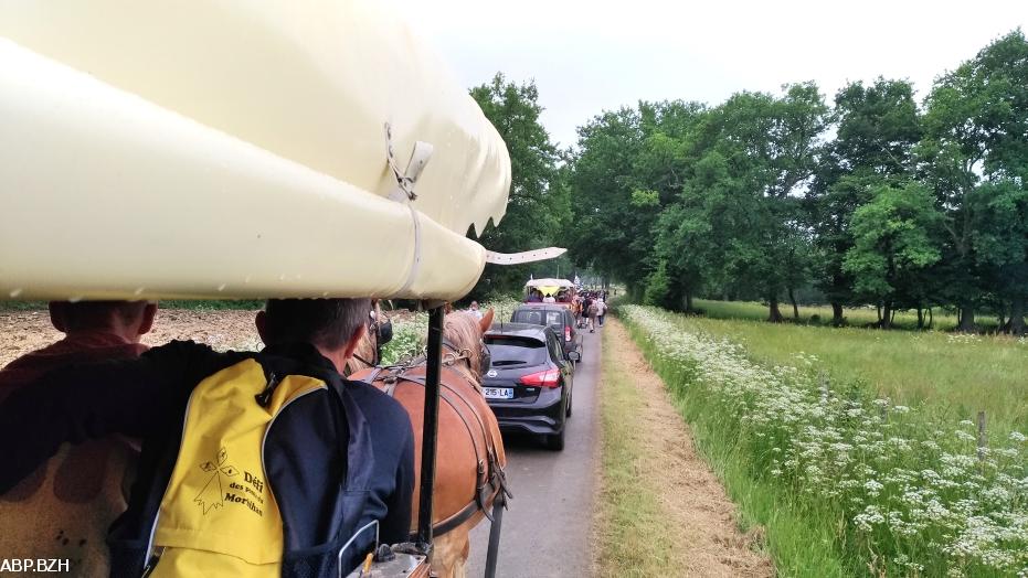 - Inauguration du Mémorial Nominoë, 26 mai 2018, Bains/Oust : vue d'une calèche, derrière la déambulation