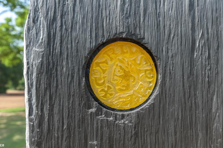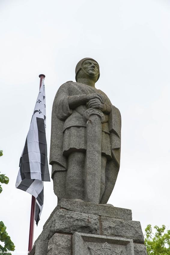 - Inauguration du Mémorial Nominoë, 26 mai 2018, Bains/Oust : gros plan sur la représentation d'un soldat de Charles le Chauve
