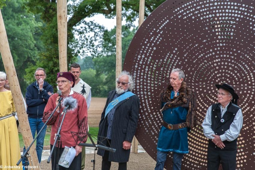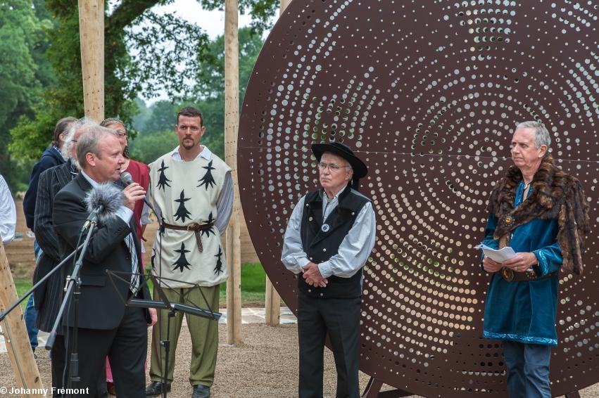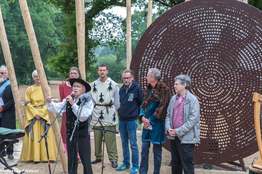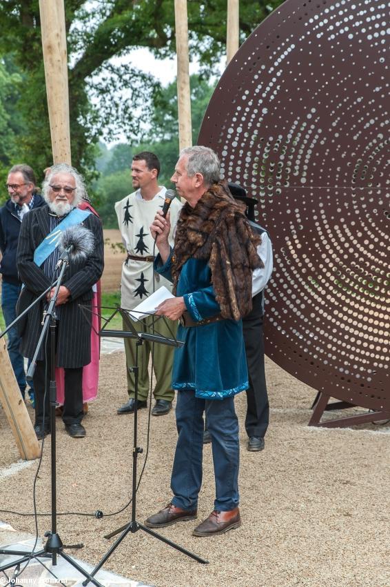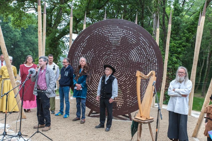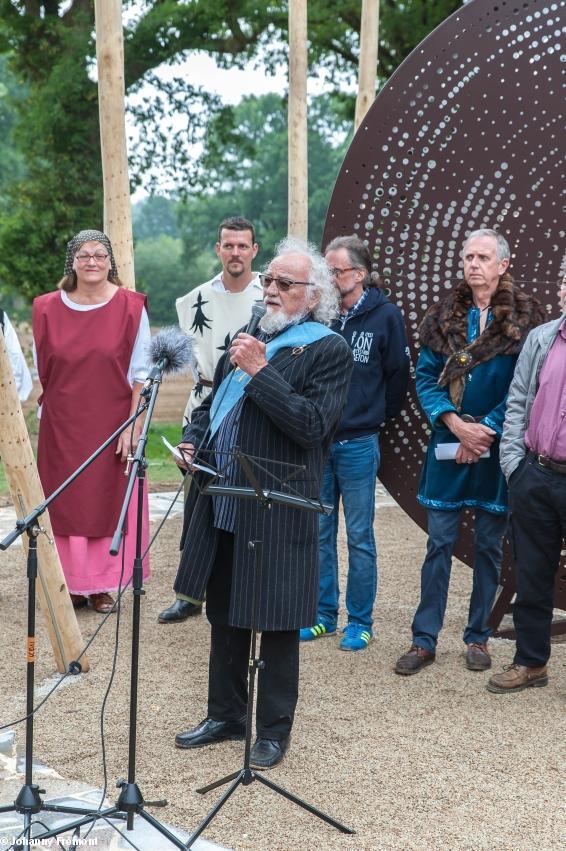 - Inauguration du Mémorial Nominoë, 26 mai 2018, Bains/Oust : Jean-Pierre Baudu, artiste, créateur deu Mémorial, chaleureusement félicité