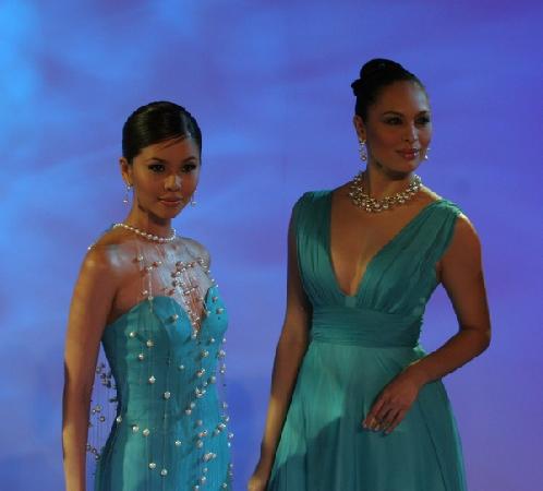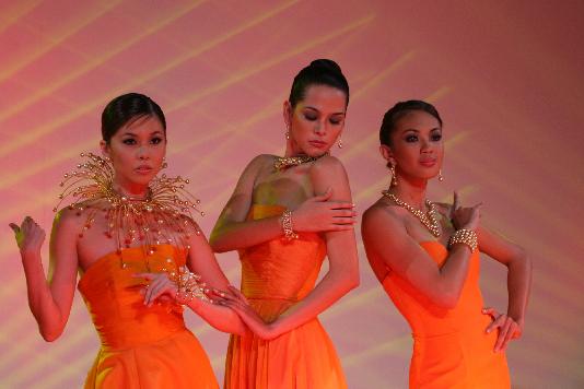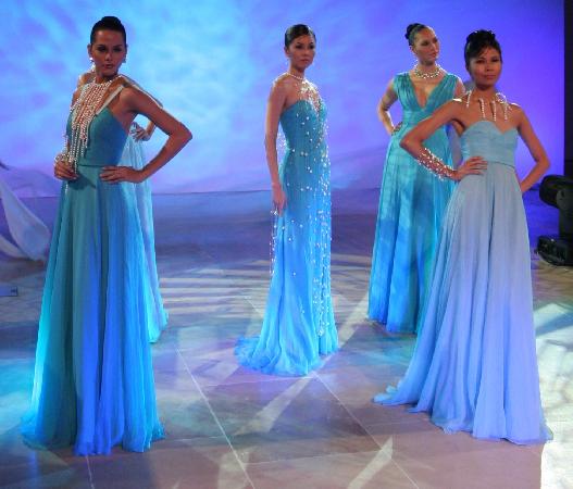- Les perles dorées produites par J. Branallec au cou des beautés de Manille (photo coll. J. Branellec).