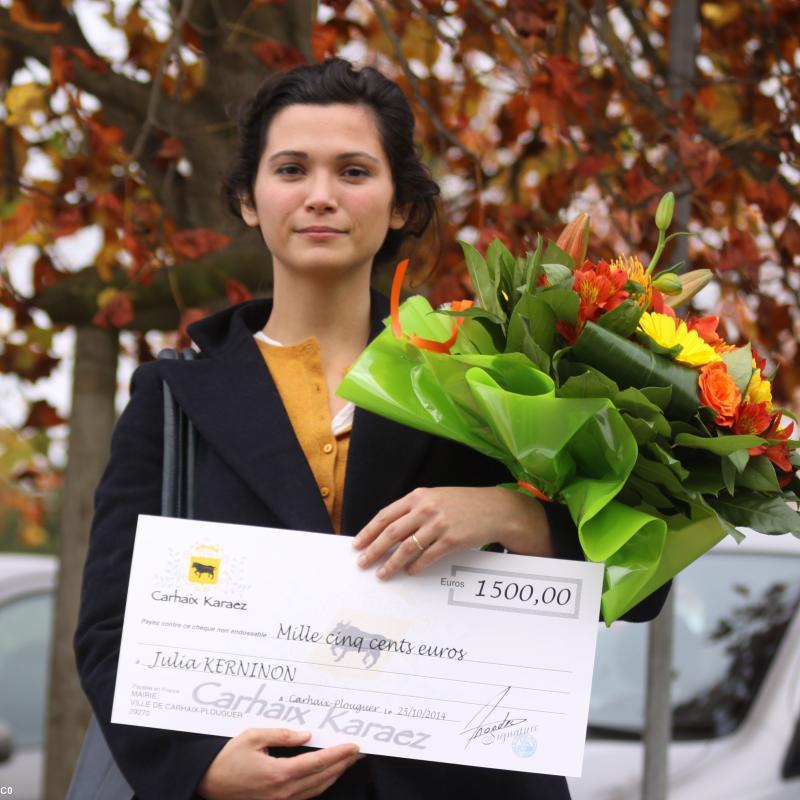 Agée seulement de 27 ans, la bretonne Julia Kerninon, née à Nantes, a reçu hier le prix du livre de la ville de Carhaix pour son roman "Buvard", qui a aussi reçu le prix Françoise Sagan en juin 2014. Doctorante en littérature américaine, Julia Kerninon est passionnée par les romanciers anglo-saxons. Elle a beaucoup vécu en Angleterre et est bilingue. Globe-trotteuse, elle a vécu à Budapest, Berlin, Birmingham, Rome et New York. Elle avait déjà écrit deux romans de jeunesse et de la poésie dans une anthologie. D'autres romans sont en cours ou prévus.