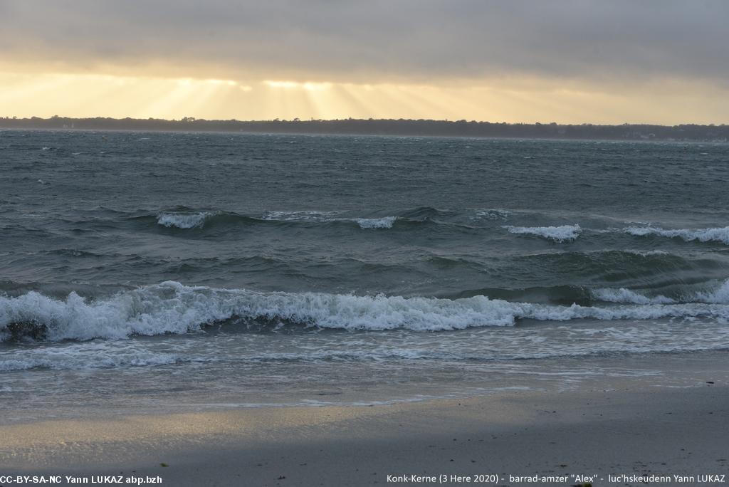 - Konk-Kerne, gwener da noz (02 Here 2020). Gwelet abaoe "an traezhioù gwenn". Vagues au crépuscule, en un lieu habituellement prisé des baigneurs.