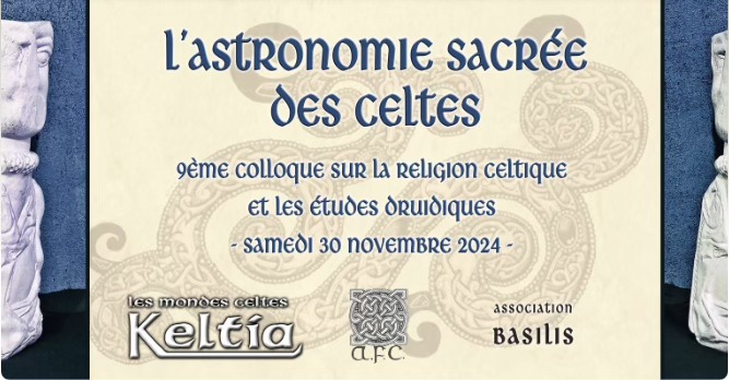 Keltia vous invite à son 9e colloque scientifique consacré cette année à : l'Astronomie sacrée chez les Celtes le samedi 30 novembre 2024 de 9h00 à 18h00, au 92 Boulevard du Montparnasse, Paris 14e.