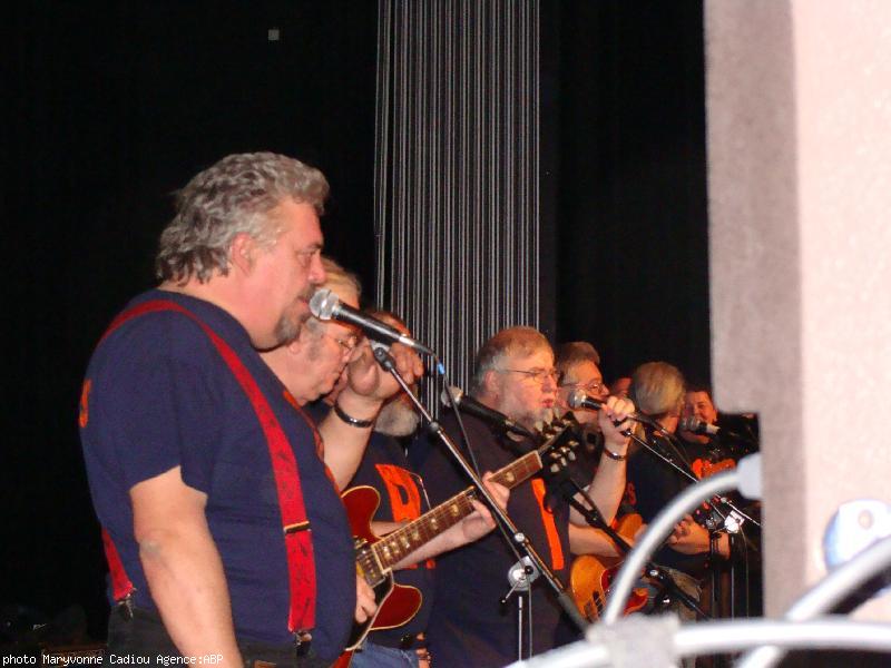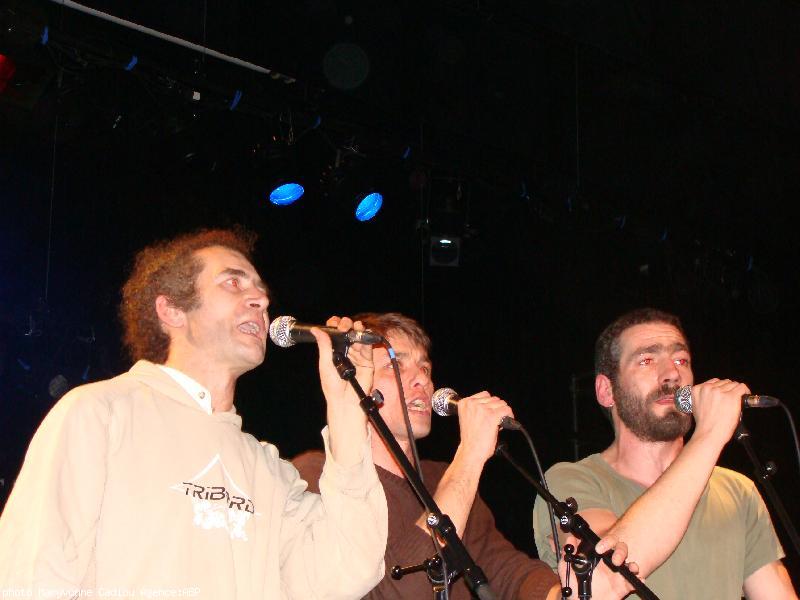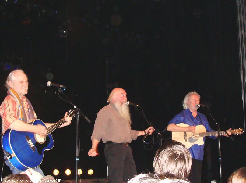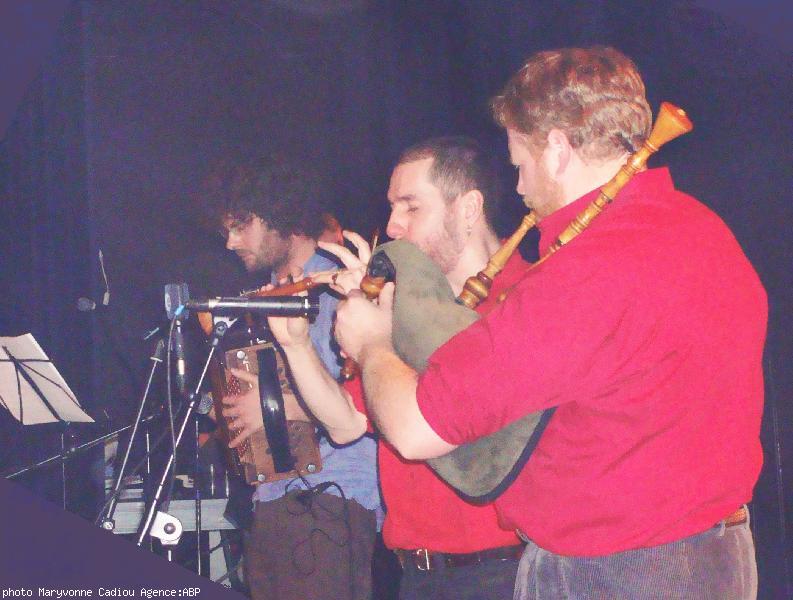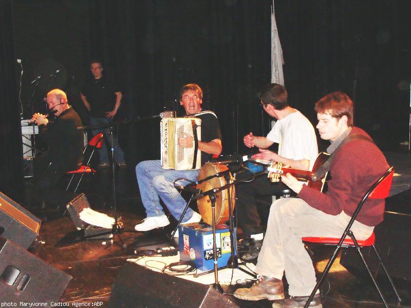 - Après <b>Red Cardell</b> (pas de photo) : «On est content d'être là j'espère que vous aussi !». Ça commence comme Brel et ça continue en An Dro. «Bon courage je crois que le chantier est loin d'être terminé...» c'est <b>Le Trio EDF</b>. P. Ewen au centre