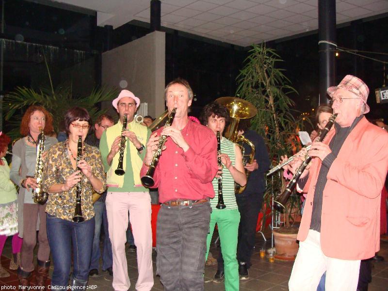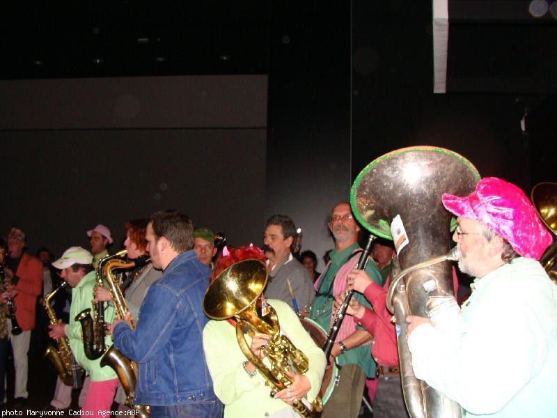 - <b>La fanfare de Douarnenez</b> joue sans sono dans la salle pendant les changements de plateau un peu longs. Ils sont 30 ou 35 inscrits et le plus souvent 20 ou 25 pour les concerts.