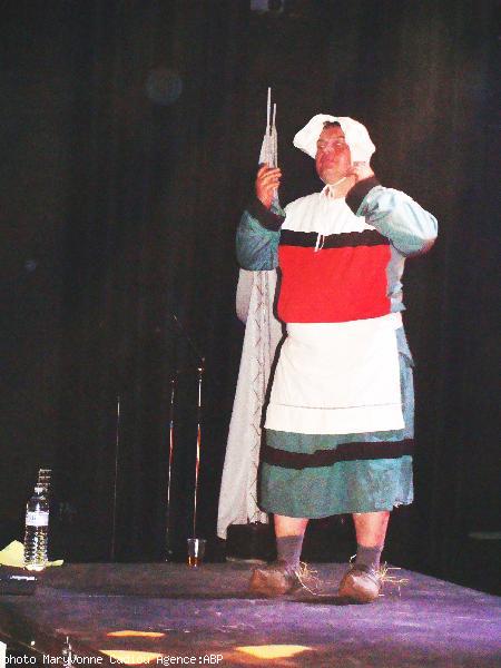 - Bécassine apparaît sur le podium à l\'arrière et se trémousse lourdement... Son compère “le maout” la rejoint. Dansent-ils ? On ne saurait dire...