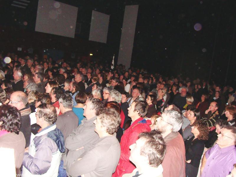 L'intersyndicale de France 3 Iroise a organisé le samedi 17 janvier à Plougastel-Daoulas une soirée de soutien à France 3 Iroise. La soirée était annoncée pour 20 heures. À 22 heures 15 la salle Avel Vor de Plougastell affichait complet quant aux normes de sécurité : 1.100 personnes, venues de Brest, Landerneau ou Carhaix, de Brasparts et des Monts d'Arrée, de Quimper, du pays bigouden, du Trégor, de plus loin encore... L'intersyndicale proteste contre la suppression du 19/20. Faute d'argent pour compenser la publicité supprimée après 20 heures, la direction de France 3 a sacrifié le 19/20, en y casant le maximum de spots de publicité. L’édition locale de 19 h 57, la plus regardée, disparaît. Après des mouvements de grève avant Noël et début janvier, dans toutes les locales de France 3, pas seulement en Bretagne, et après la manifestation au Roc'h Tredudon le 4 janvier passé (voir la video ci-contre), cette soirée fut un concert suivi d'un fest noz. Henri Morvan, journaliste, déclare « Nous sommes favorables à la suppression de la publicité à France Télévision, mais pas au moyen trouvé par la direction pour son financement. Elle a jugé bon d'appliquer la loi anti-pub dès le 5 janvier, avant qu'elle soit votée... » « Nous ne voulons pas forcément faire pression contre le projet de loi. Nous voulons que la direction parisienne de France 3 change à nouveau la grille par respect pour le public. Nous craignons que les téléspectateurs aillent chercher ailleurs les infos et fuient vers d'autres chaînes. Ce n'est pas une preuve de bonne gestion. Les gens et les journalistes sont choqués qu'un journal d'info soit remplacé par de la publicité. Le 19 h 57, le plus regardé, durait 5 minutes, jusqu'à 20 h 02 ».Bruno Gilbert, délégué du personnel auprès de la direction de France 3 Ouest à Rennes, précise « Oui, il y a en plus risque de réduction de personnel. Par exemple, pour la grille d'été, c'est la première émission d'info qui est supprimée, celle de 18 h 55. Moins de CDD sont embauchés en été. Avec la suppression à l'année du 19 h 57, il y a donc aussi crainte que toutes les subdivisions locales soient supprimées, et cela concerne TOUT le Finistère... » de la pétition "Sauvons les locales". Photos et propos recueillis par Maryvonne Cadiou. Philippe Argouarch