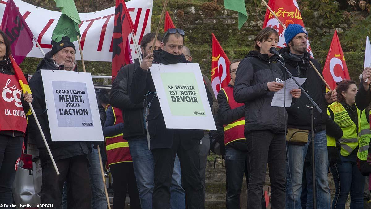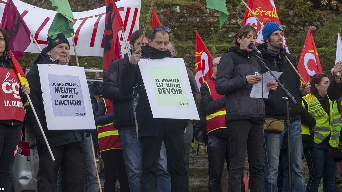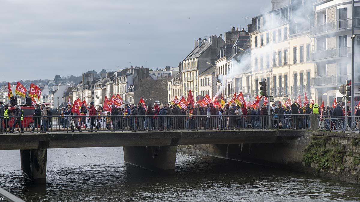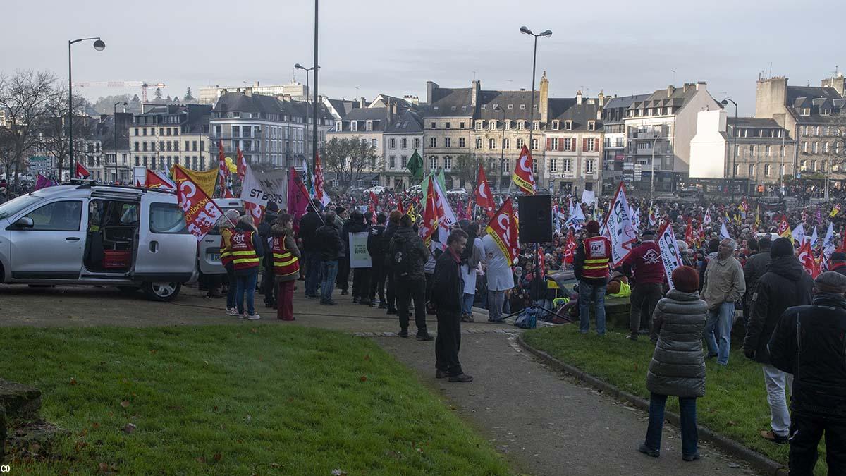Environ 8000 personnes se sont rassemblées à Quimper place de la Résistance et ont défilé dans le centre-ville ce jeudi 5 décembre 2019