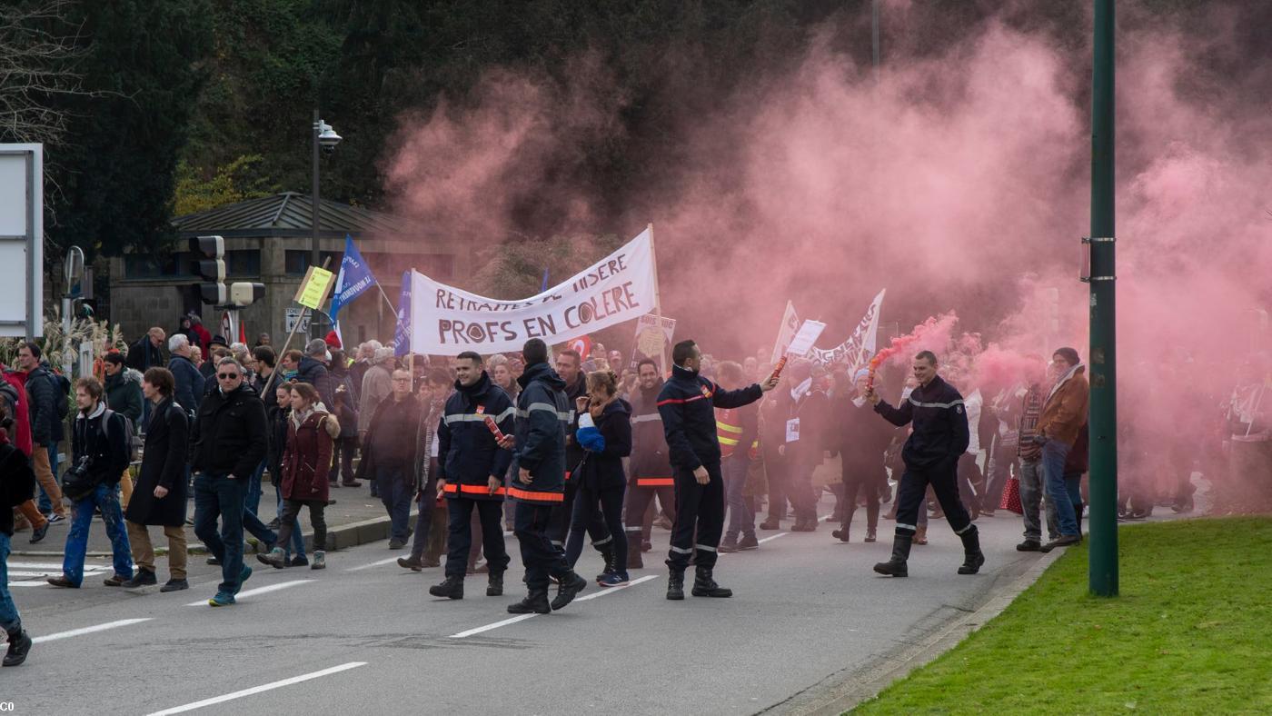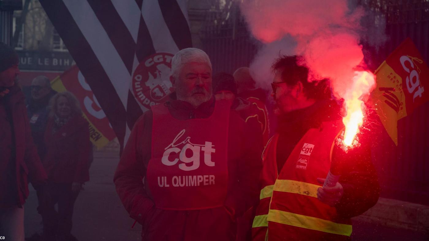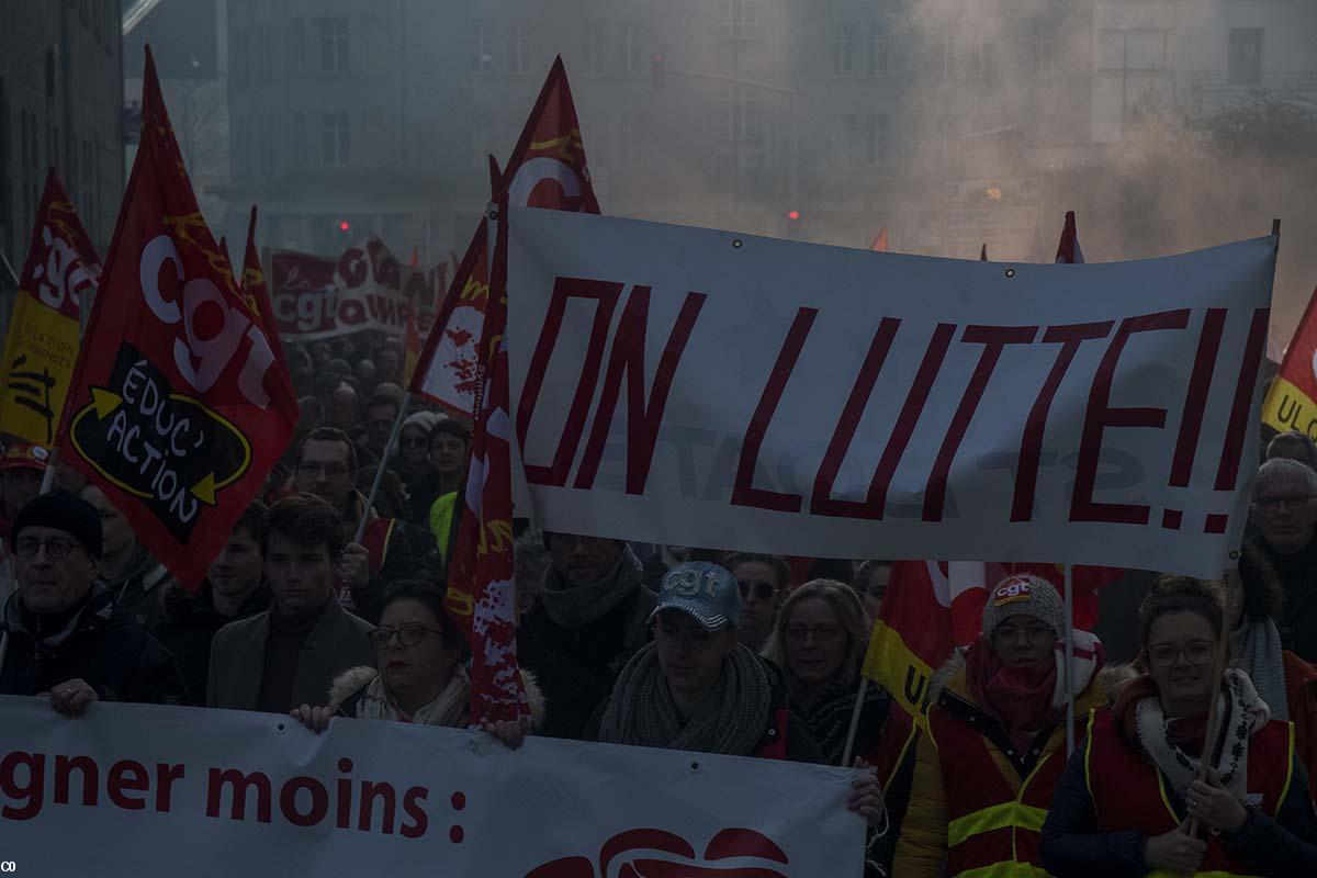 Environ 8000 personnes se sont rassemblées à Quimper place de la Résistance et ont défilé dans le centre-ville ce jeudi 5 décembre 2019