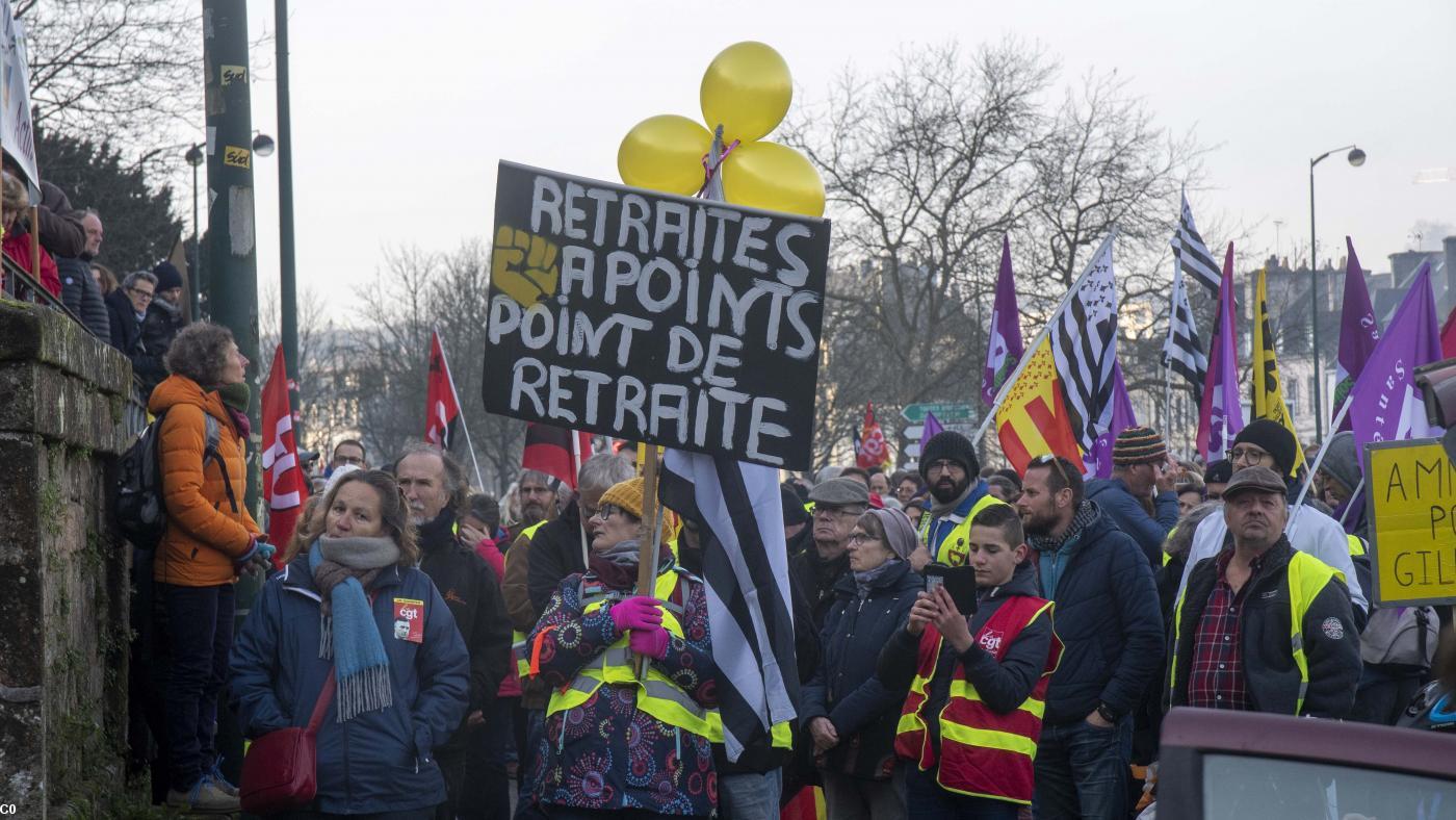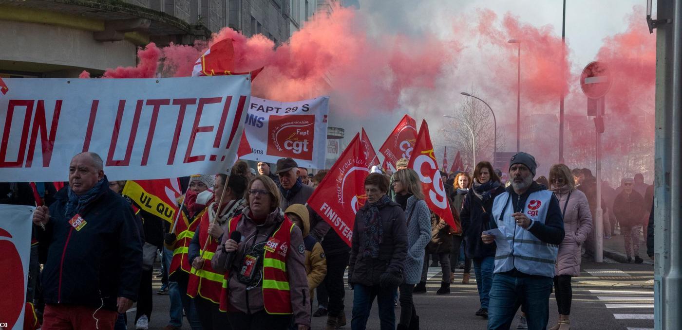 Environ 8000 personnes se sont rassemblées à Quimper place de la Résistance et ont défilé dans le centre-ville ce jeudi 5 décembre 2019. Les griefs portaient notamment sur le projet de réforme des retraites que propose le gouvernement.