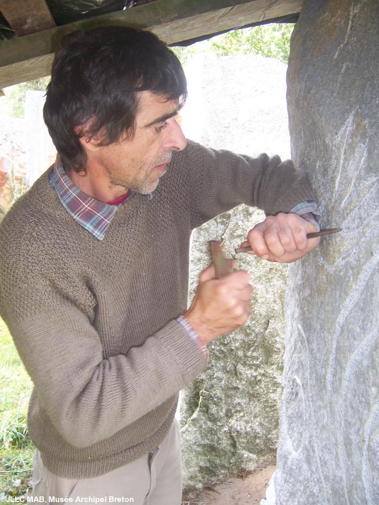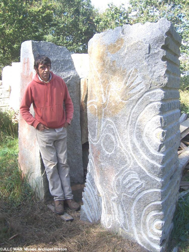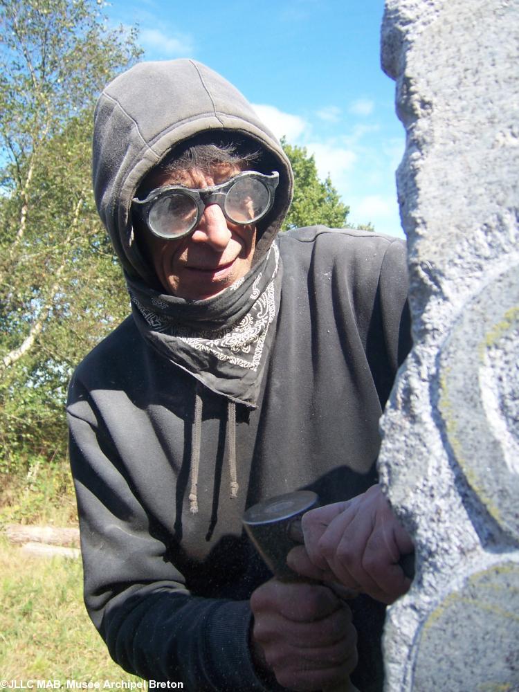 Michel Amade, passionné et généreux, curieux et attentif, érudit en sa matière basque qu\'il connaît dans tous ses aspects, (à commencer par sa langue si ancienne qu\'elle explique beaucoup de choses dans son étymologie antérieure aux langues indo-européennes modernes), nous a fait l\'honneur d\'être le premier sculpteur à intervenir sur les menhirs de Koad Sav Pell.