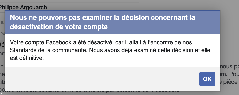 Nous comprenons que les réseaux sociaux doivent réagir le plus rapidement possible quand les standards définis par les cultures et les communautés sont ignorés, mais ne pas donner la possibilité d'appel de la décision en particulier lorsqu'il s'agit d'un piratage est inacceptable.
