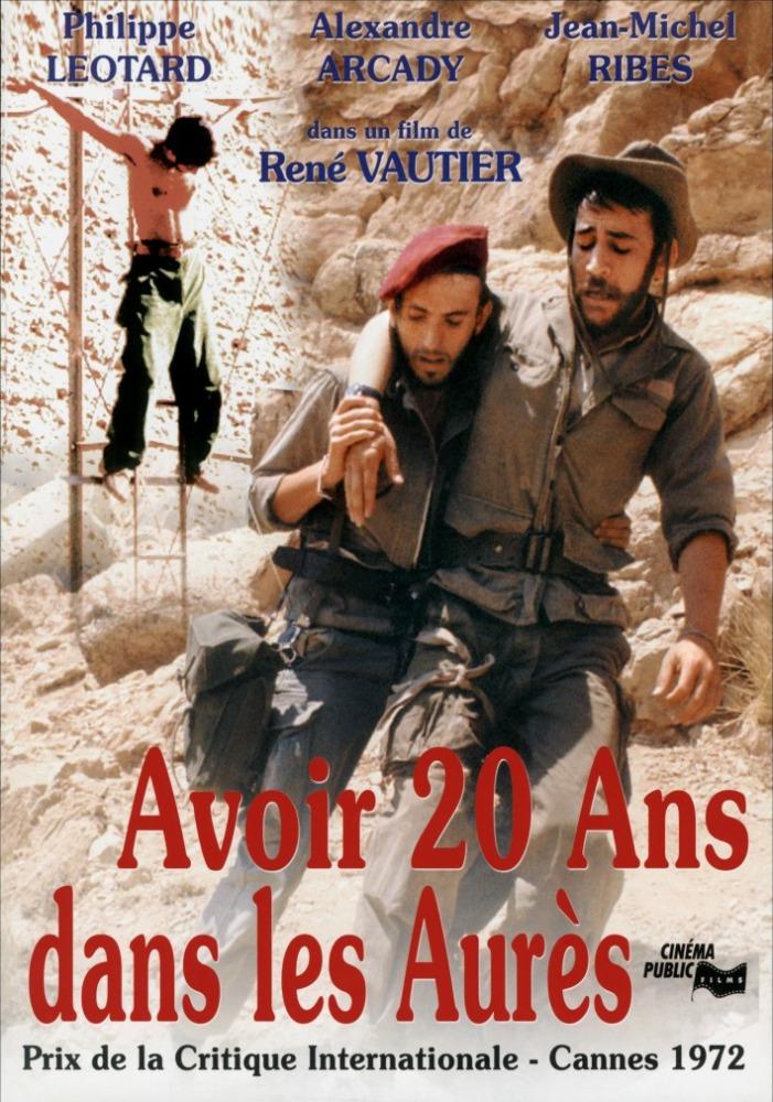 target="_blank">Avoir vingt ans dans les Aurès - 1971 ; Long métrage de René Vautier - Sonore - Couleurs ; Photo : Pierre Clément, Daniel Turban ; Chansons : Pierre Tisserant, Bernard Ramel, Yves Branellec, René Vautier ; Durée : 100 min ; Avec : Noël Arcady, Philippe Léotard, Hamid Djellouli, Jean-Michel Ribes ; 1961, dans le Sud algérien. Des rappelés, hostiles à la guerre d’Algérie, ont été repris en mains par le lieutenant Perrin. Pris dans l’engrenage de la guerre, ils pillent, ils tuent, ils violent. Sauf Noël, un humaniste, qui a toujours refusé de se servir d’une arme. Il libère un prisonnier algérien qui doit être fusillé et fuit avec lui vers la frontière.