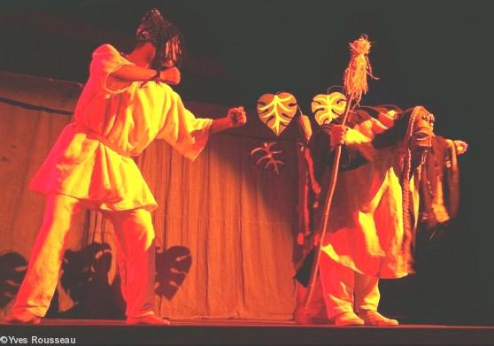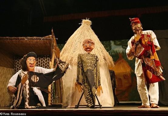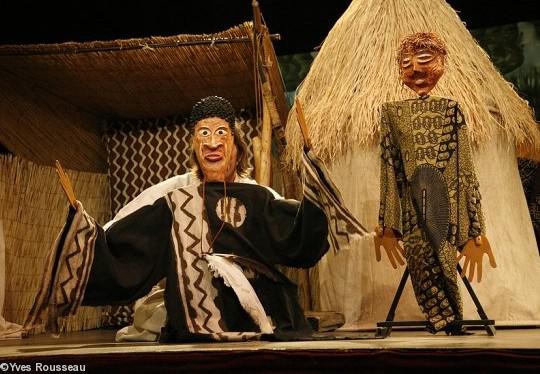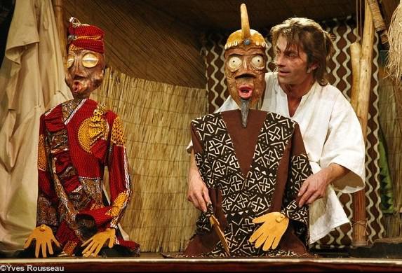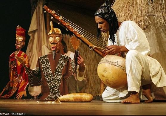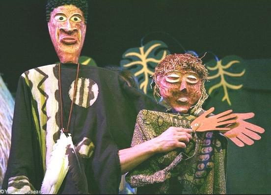 Marionnettes, musique traditionnelle mandingue, intervenants : Éric Tremblay comédien / manipulateur de marionnettes ; Doudou Bernus musicien / manipulateurs de marionnettes.