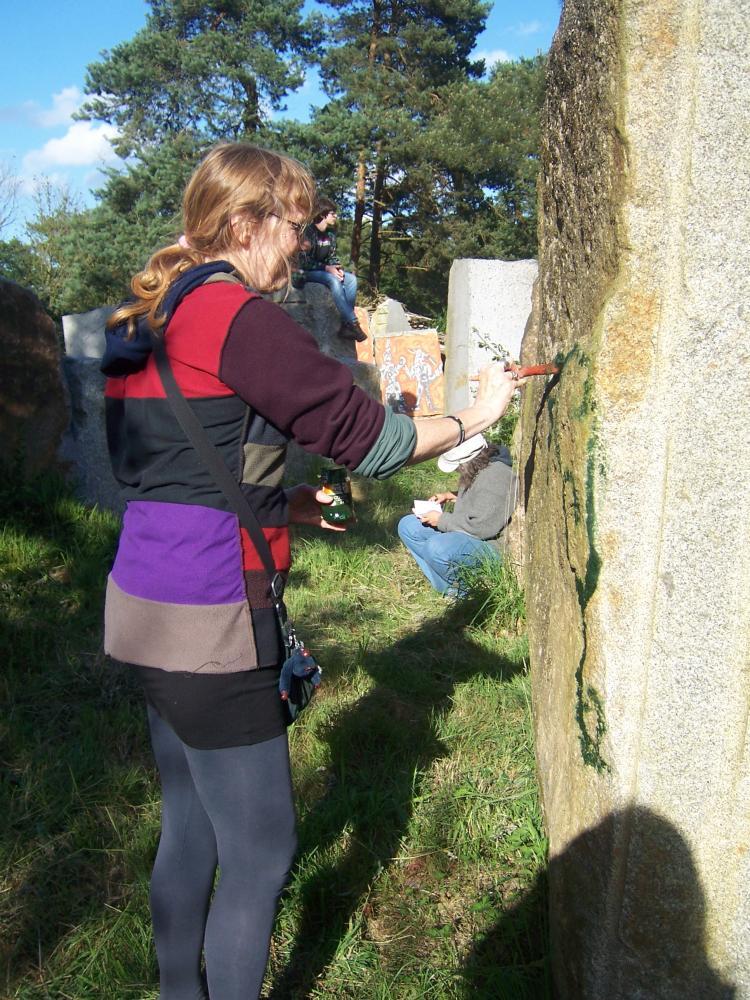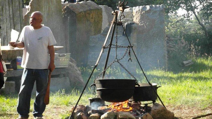 Sur l\'ensemble du week-end, divers talents vont nous rejoindre pour des démonstrations de leur art, dans une ambiance conviviale entre jeux bretons et tirage de joncs, dont le céramiste Guillaume Clermont qui fera une cuisson dans un four papier. Christophe Mérose fera lui une cuisson d\'enfumages d\'œufs en terre de porcelaine, ainsi qu\'une peinture à l\'argile sur huit pierres levées. Christophe Mérose, Yann Le Rousic et d\'autres artistes feront également une peinture éphémère à l\'argile colorée sur les pierres levées, et comme au mois de juin dernier, chacun, petit ou grand, pourra s\'exprimer de la même façon. Le sculpteur basque Michel Amarade terminera devant le public une sculpture, sur un des menhirs de Koad Sav pell, commencée quelques jours avant en résidence sur le terrain: