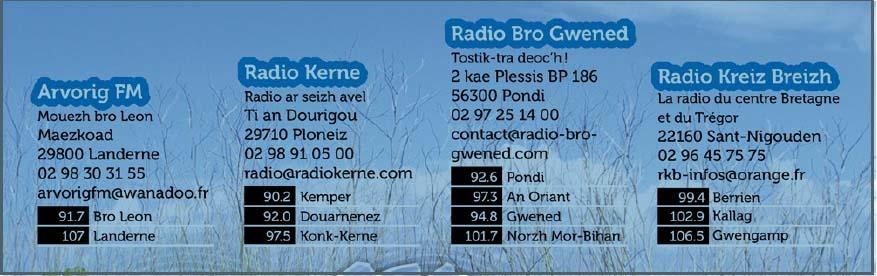 Les infos des "Keleier ar Vro" seront diffusées à 7 h 45, 8 h 45, 12 h 45, 17 h 30 et 18 h 45. Les radios sont aussi sur le net : de Stalig.