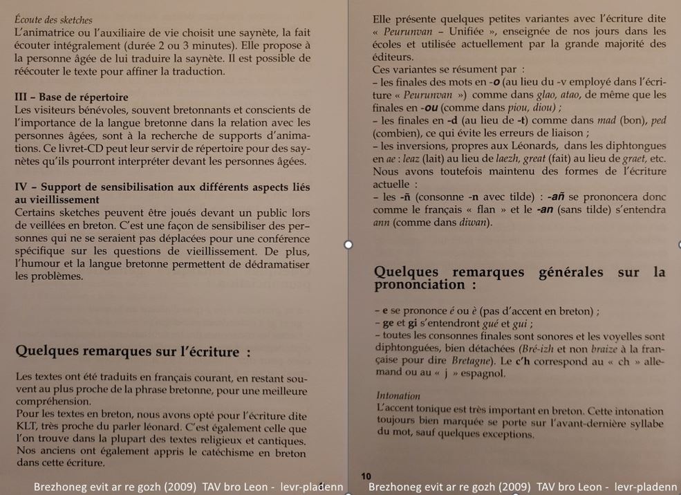 Menegomp ivez emañ al levrioù-se embannet e doare-skrivañ KLT (gwelout Al liammoù, e traoñ ar pennad-mañ). Tost-tre ouzh yezh bro-Leon emañ ha tost ivez ouzh an doare-skrivañ « peurunvan » implijet er skolioù a-vremañ. Forzh piv bennak desket e brezhoneg dre hon skolioù pe dre stummadurioù all a c’hello lenn an destennoù-se. Evit e blijadur / he flijadur.