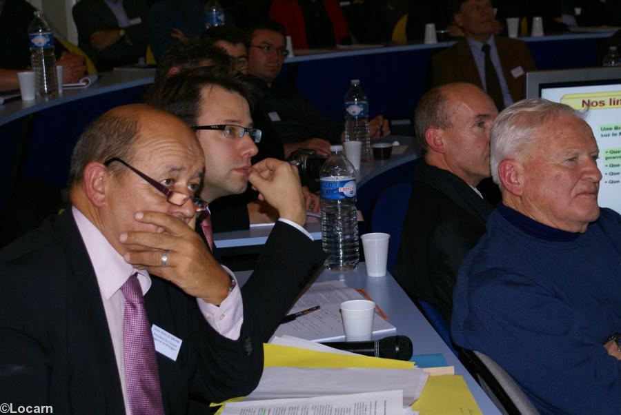 L'Institut de Locarn avait rarement vu autant de monde jeudi dernier. La salle était pleine à craquer et il avait fallu refuser 40 personnes. Le thème de la rencontre du fameux think tank : "Préparer le futur de l'économie bretonne", avait de quoi rassembler des chefs d'entreprises de plus en plus inquiets, dans un contexte de crise qui se conjugue à deux décennies de désindustrialisation.Les débats concernaient l'énergie (éoliennes, hydroliennes biomass et même nucléaire, interventions de Jean-Yves Le Drian et Joseph Le Bihan), les bio technologies (ADN sequencing, bio informatique, micro-algues, intervention de Jean-Paul Moisan), les infrastructures (LGV, la RN 164, le port de Brest, le très haut débit pour tous, intervention de Jean-Yves Le Drian), l'agro-alimentaire (le sort tragique des agriculteurs bretons, comparaison avec l'Allemagne, prix du lait, prix du porc, intervention d'Alain Glon), l'innovation, l'investissement (le fonds stratégique breton, les SAT ou Sociétés d'Accélération Technologique, la bureaucratie et le manque de convivialité, Alain Glon, J.-Y Le Drian), la réunification (intervention d'Émile Caër ; J.-Y. Le Drian est contre le Grand-Ouest).