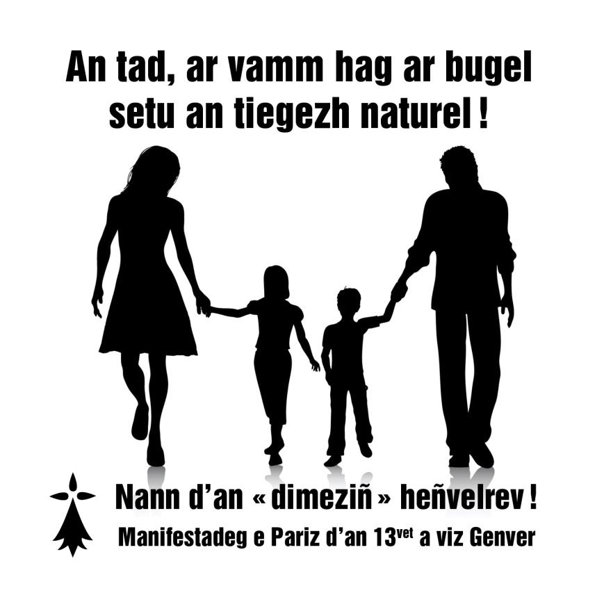 Izili Emglev An Tiegezhioù a bed ar vrezhonegerien da vanifestiñ a-gevret en o yezh di sul e Pariz a-enep raktres lezenn ar gouarnamant a fell dezhañ aotren an euredoù etre