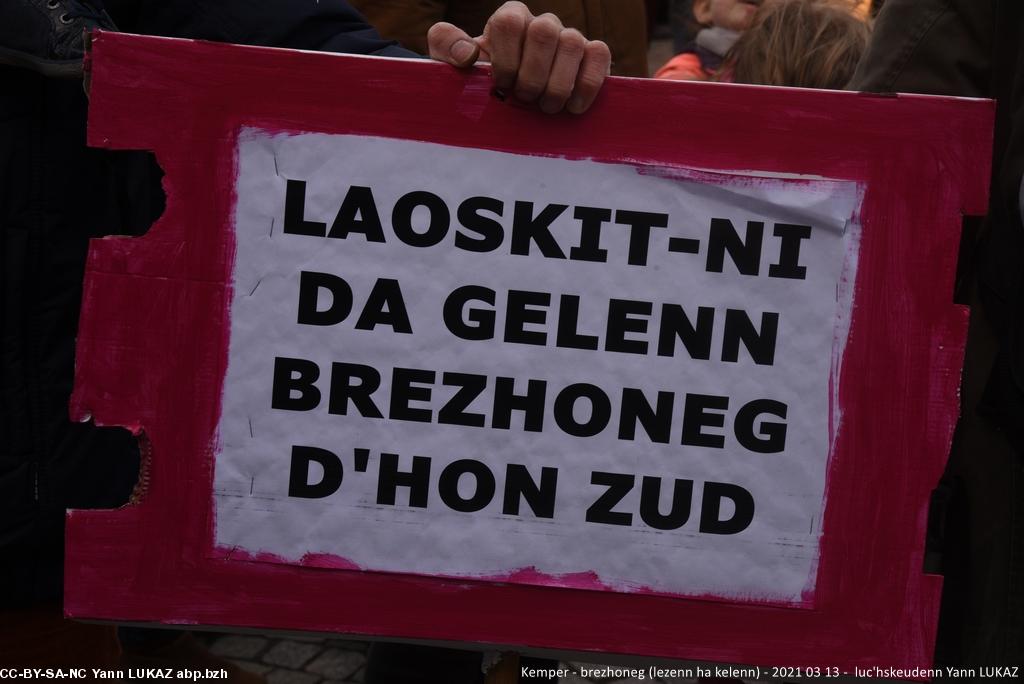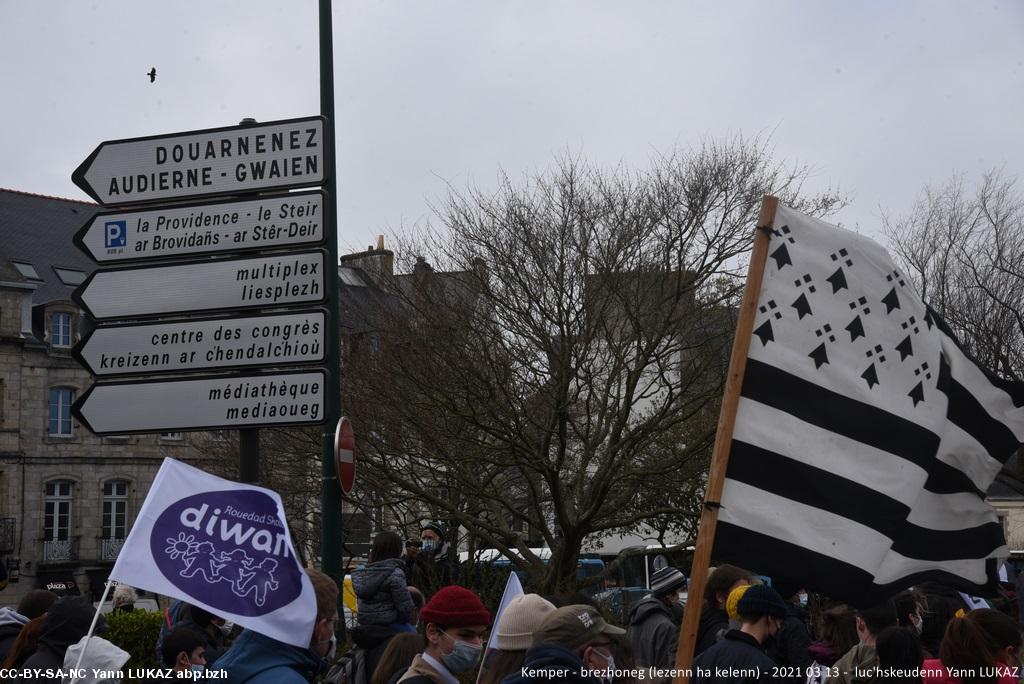 - Kemper, manifestadeg evit ar brezhoneg (13vet a viz meurzh 2021). Dibunadeg. Skritelloù divyezhek e kreiz-kêr.