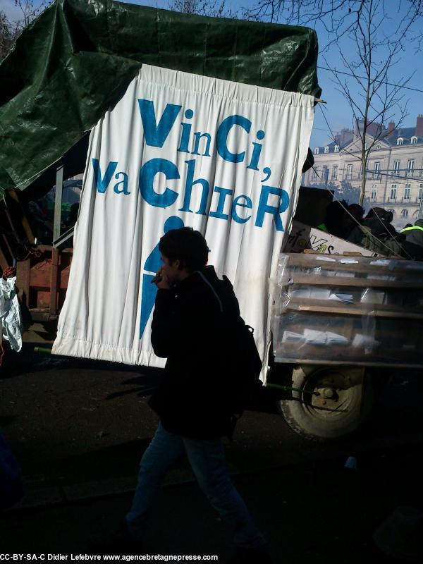 - Visiblement, Vinci n'est pas en... odeur de sainteté. Manifestation anti-aéroport à Nantes le 22 février 2014.