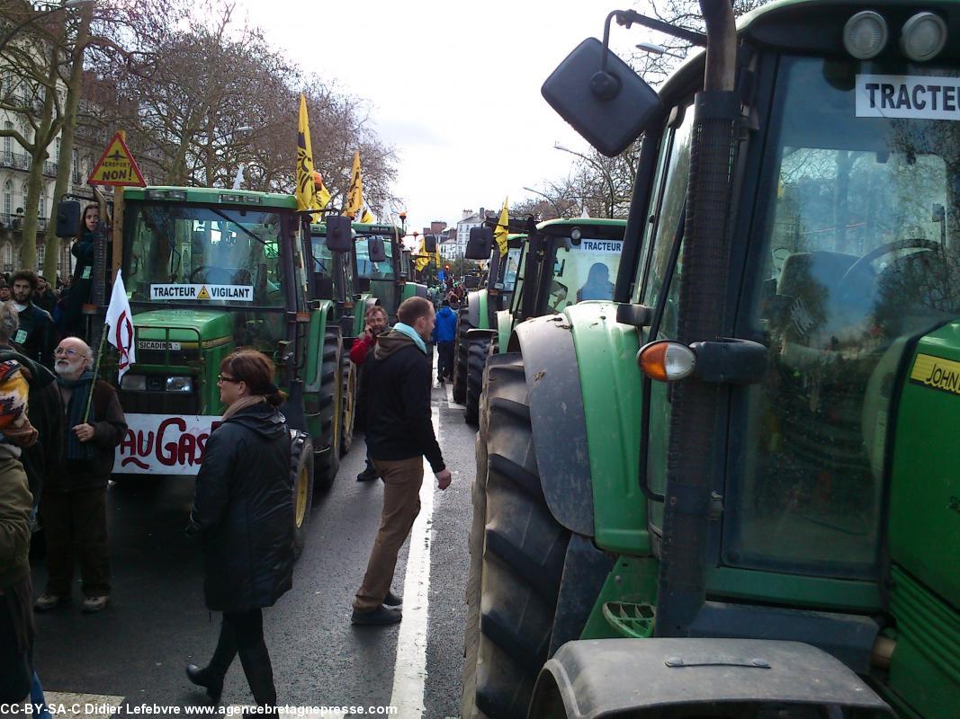 - Dans une manifestation d'écolos, même les tracteurs sont verts. Manifestation anti-aéroport à Nantes le 22 février 2014.