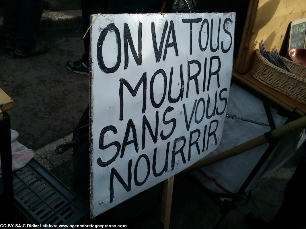 - Cet agriculteur souhaite vivre... et nous faire vivre. Manifestation anti-aéroport à Nantes le 22 février 2014.