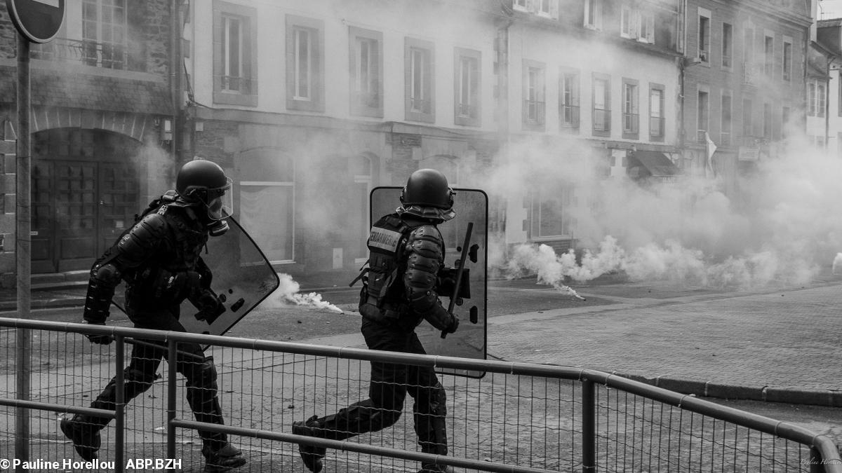 Il n'y a pas eu de dégâts au niveau des commerces en ville mais des affrontements ont eu lieu en particulier causés par des éléments très jeunes. Il y a eu quatre interpellations et un policier blessé selon la préfecture. Les policiers n'ont pas utilisé le LBD40, mais notre photographe a rapporté des gaz lacrymogènes très très agressifs. Elle a les yeux en feu au point de ne plus pouvoir les ouvrir et n'arrête pas de tousser et de pleurer.