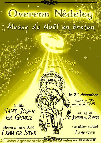 Le 24 décembre à partir de 18 h, une veillée de Noël suivie de la messe est proposée, en breton.