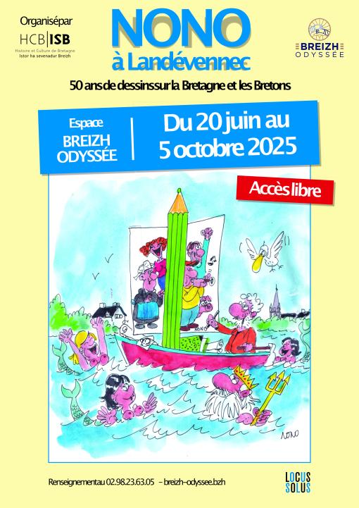 Du 21 juin au 5 octobre 2025, l'association Histoire et Culture de Bretagne présente à Breizh Odyssée à Landévennec, une rétrospective de la carrière du dessinateur de presse « Nono ». Sont exposés près de deux cents dessins de Nono ainsi qu'un film de 45 min. Nous vous attendons nombreux pour revivre le parcours d'un dessinateur de presse qui a marqué la Bretagne depuis les années 70 par son humanisme et sa défense de la culture bretonne.