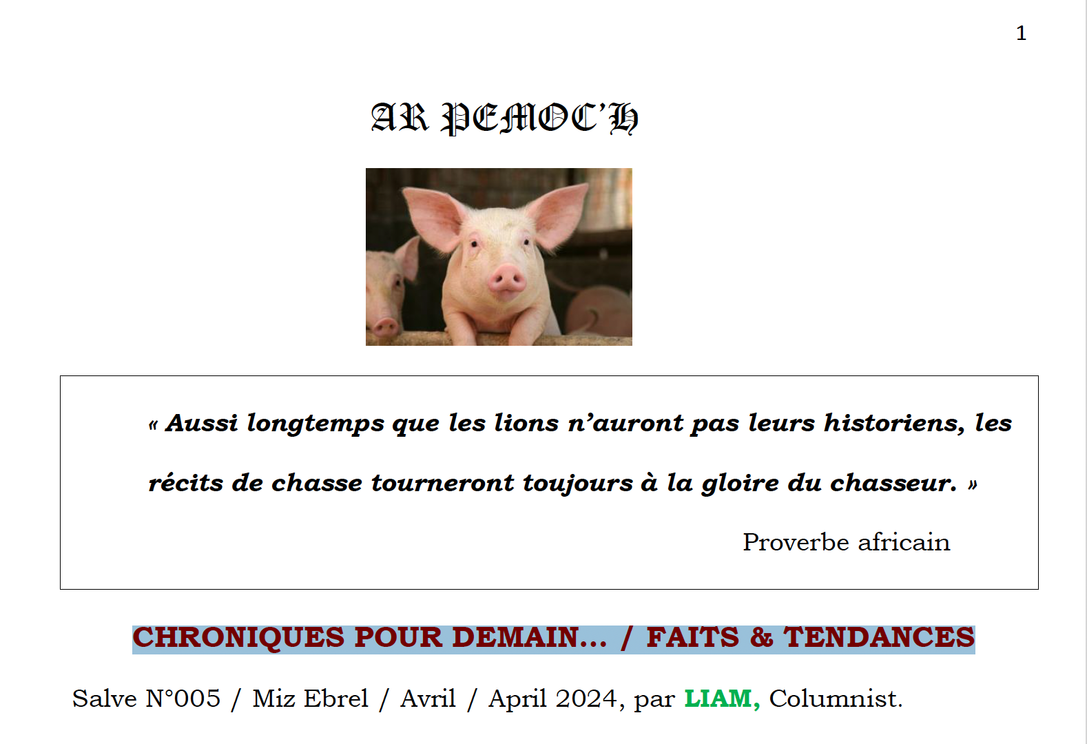 CHRONIQUES POUR DEMAIN… / FAITS & TENDANCES
