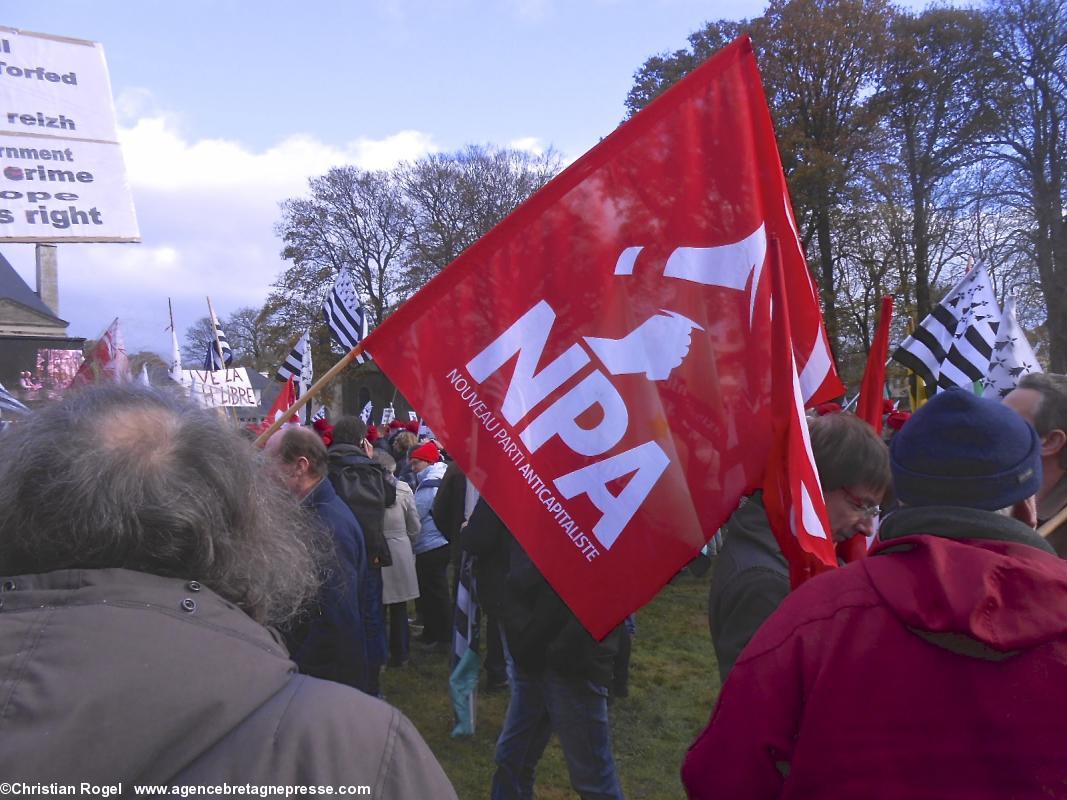 - Drapeau du Nouveau Parti anticapitaliste. A Carhaix, lors du rassemblement du 30/11/13, de multiples opinions étaient représentées.