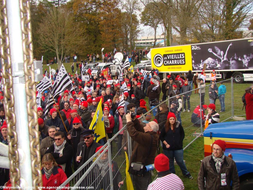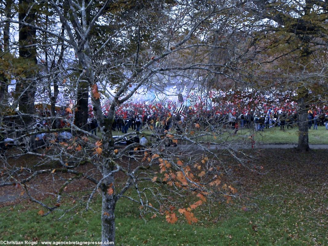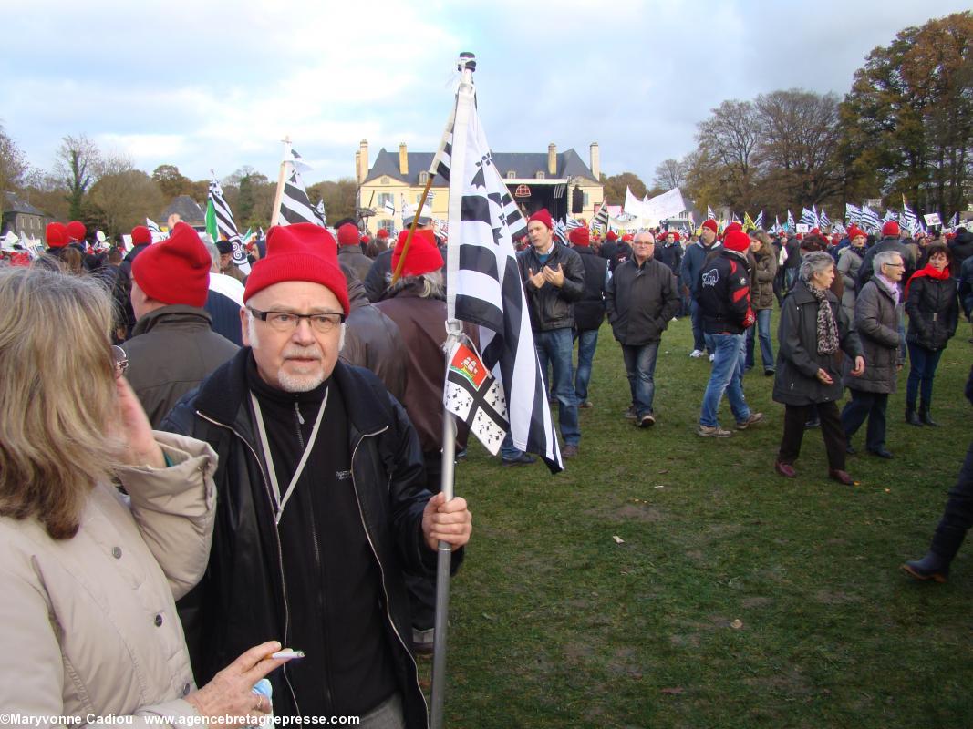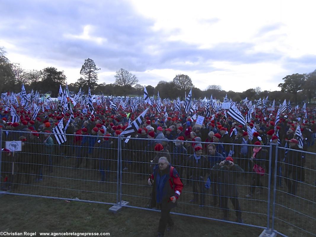 - Le parc se remplit doucement. 13 h 35. La scène est devant le château de Kerampuilh. Bonnets Rouges, Karaez 30 nov. 2013.