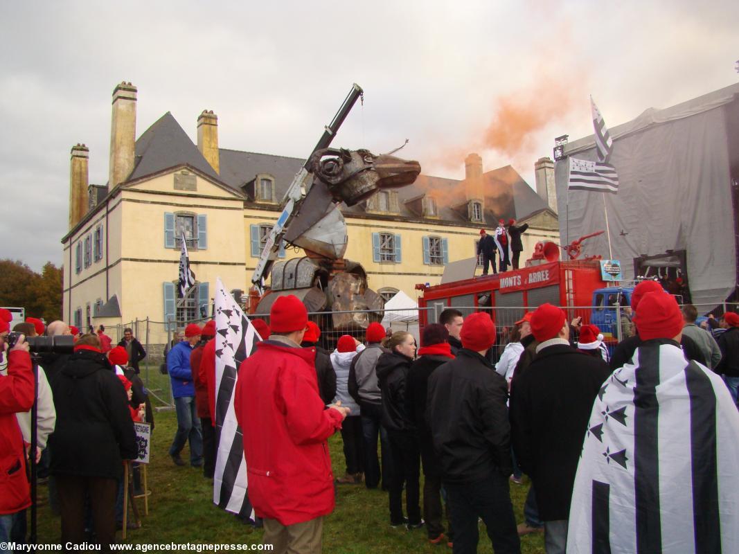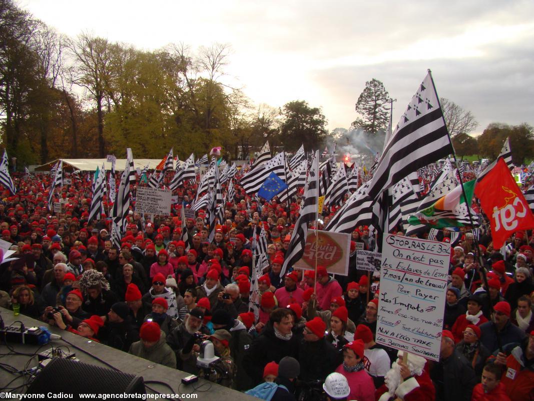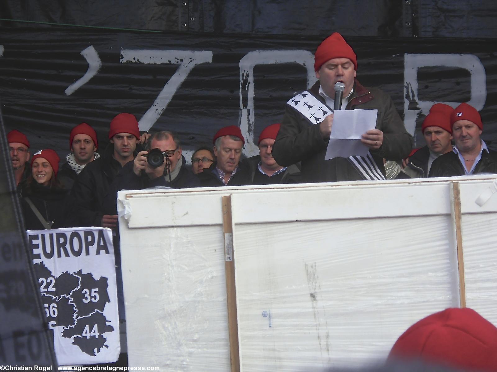 Le conseiller général et maire de Carhaix, Christian Troadec, que les média s'arrachent maintenant, fit un discours qui montrait les convergences de toutes les demandes des secteurs professionnels et affirmait qu'il n'y avait pas eu une manifestation aussi nombreuse en Bretagne, depuis des années, alors qu'il donnait, à ce moment-là, une estimation prudente de 30 000 présents. Interrogé plus tard sur les critiques de manque d'unification apparente du Collectif, il répondait que " pour le moment, il y a différentes approches, mais que le fait d'avancer ensemble permettra de dégager des manières communes de faire ".