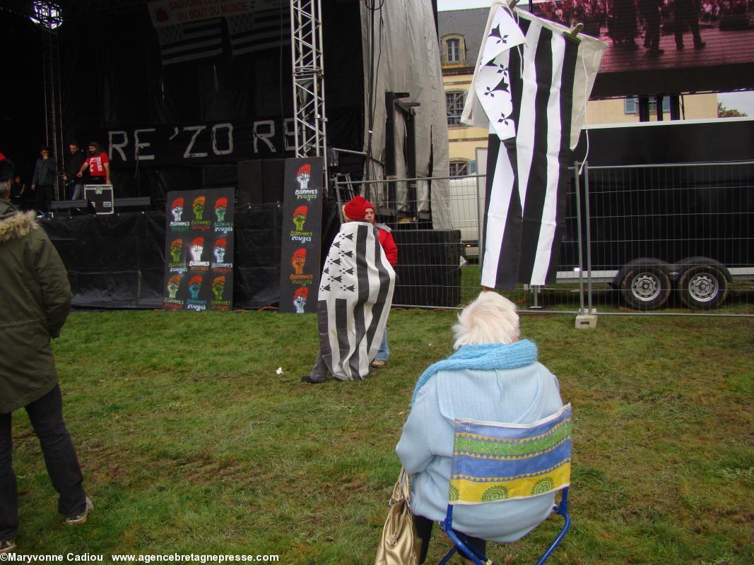 - Une grand mère stoïque est déjà à poste devant la scène. 13 h 44. Bonnets Rouges, Karaez 30 nov. 2013.