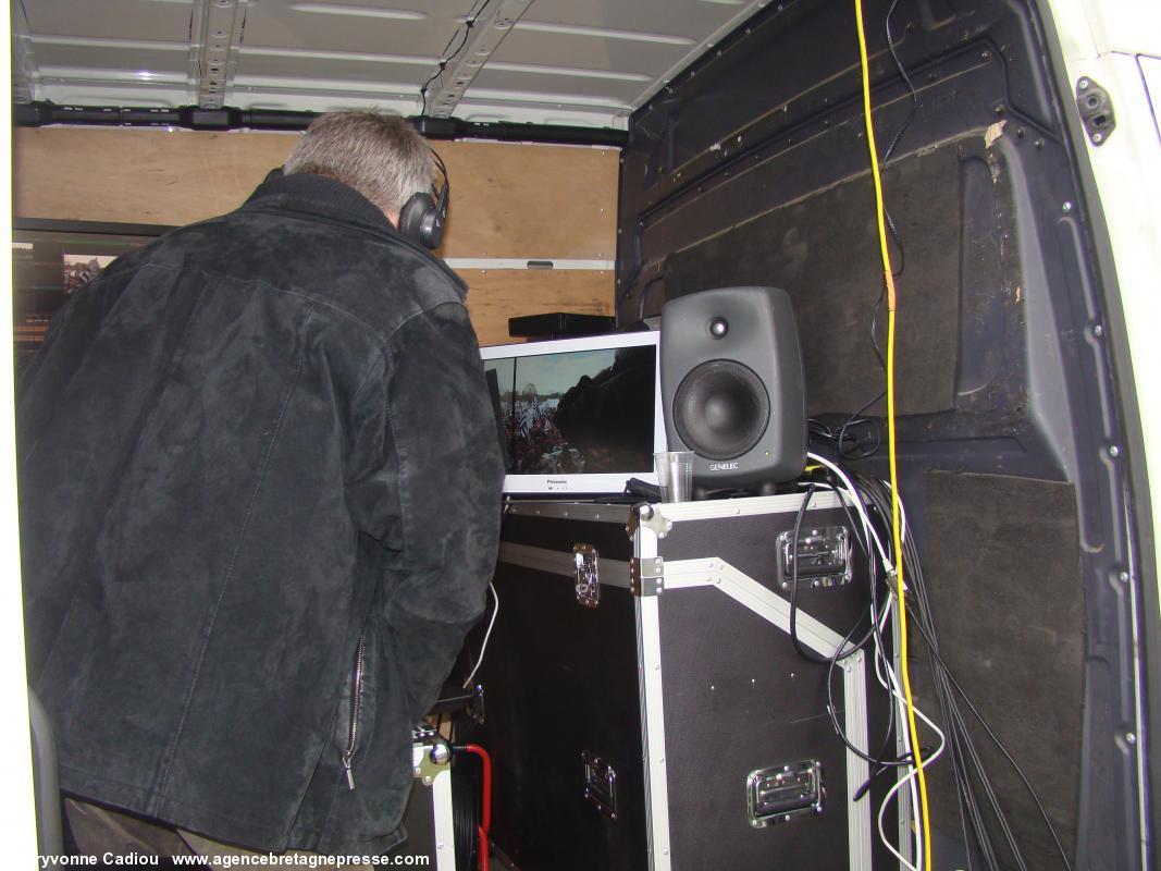 - Dans la camionnette-studio de Radio Montagnes Noires. Bonnets Rouges, Karaez 30 nov. 2013.