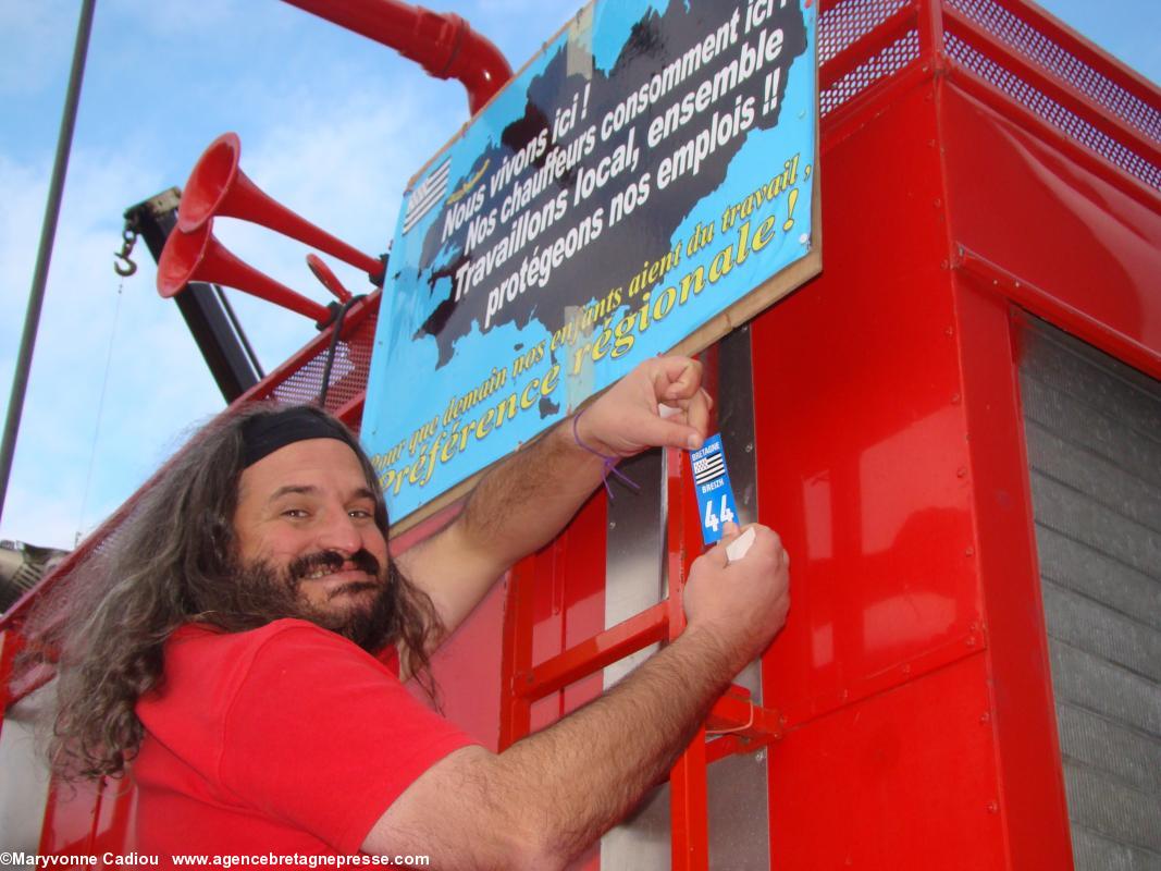 - Le Nantais Rachid Bara a terminé de coller les autocollants "plaques" de voiture. Si petits soient-ils. Bonnets Rouges, Karaez 30 nov. 2013.