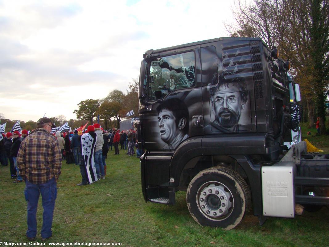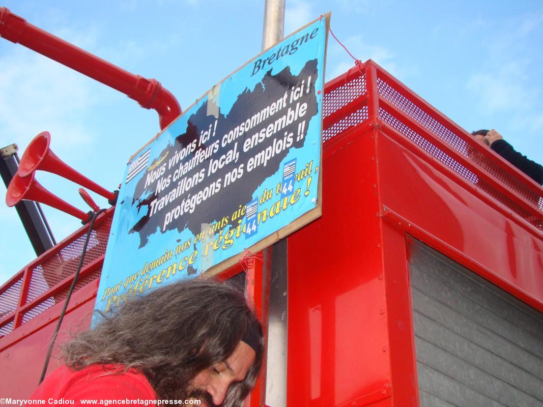 - Près de la scène. Tiens, une carte de la Bretagne sur ce camion. On dirait... la Bretagne croupion ! Bonnets Rouges, Karaez 30 nov. 2013.