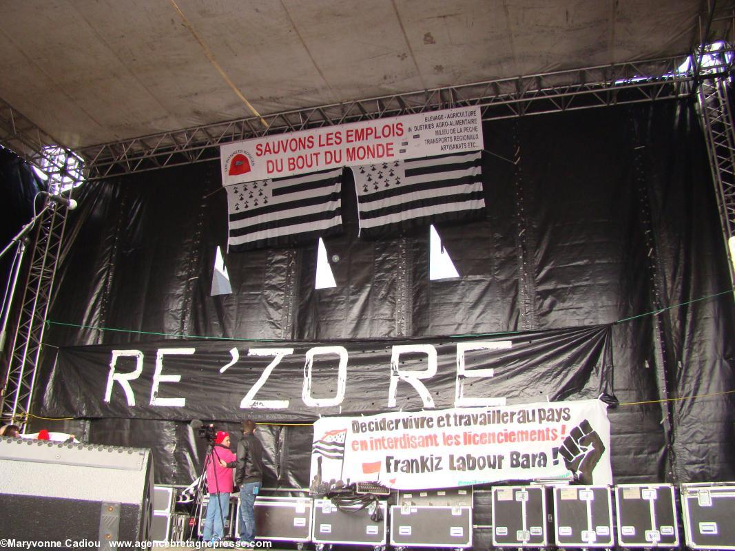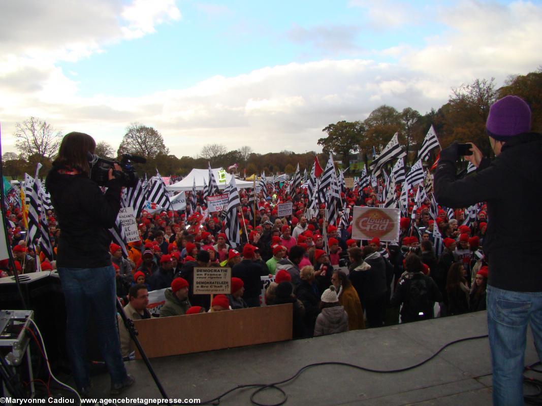 Le plateau des orateurs du Collectif Vivre, décider et travailler en Bretagne, qui était l'organisateur, était composé de manière à faire place à toutes les professions et à tous les secteurs professionnels impliqués.Aussi sur ABP…Plus de 20 000 manifestants à Quimper pour l’emploi en Bretagne