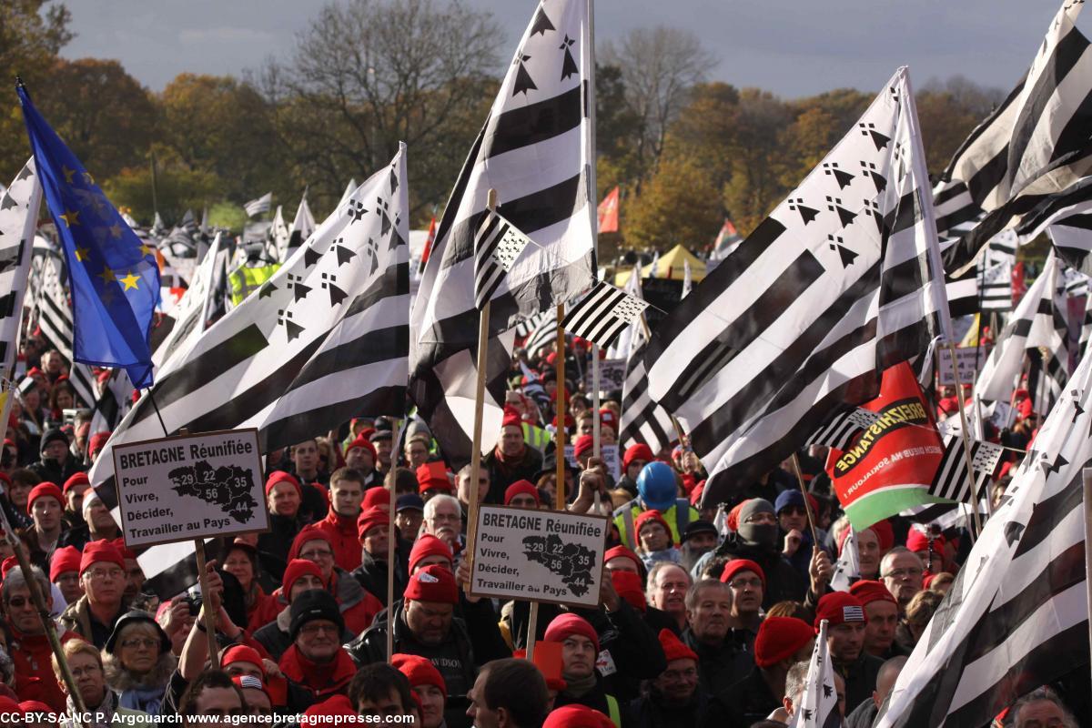 Le succès de la manifestation du 2 novembre à Quimper, dite des « Bonnets rouges », vient de trois éléments cumulés : peur du chômage, mécontentement des entrepreneurs et émotion créée par la mutilation d'un jeune homme par une grenade de la police, 8 jours avant. Deux points importants : présence de jeunes de - de 25 ans et le faible nombre de pancartes indiquait le manque d'habitude de manifester.
