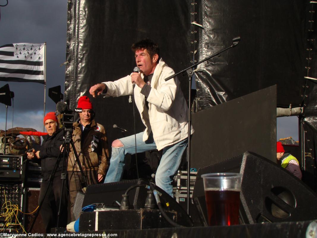- Rachid Bara en pleine action pour rectifier l'erreur. Bonnets Rouges, Karaez 30 nov. 2013.