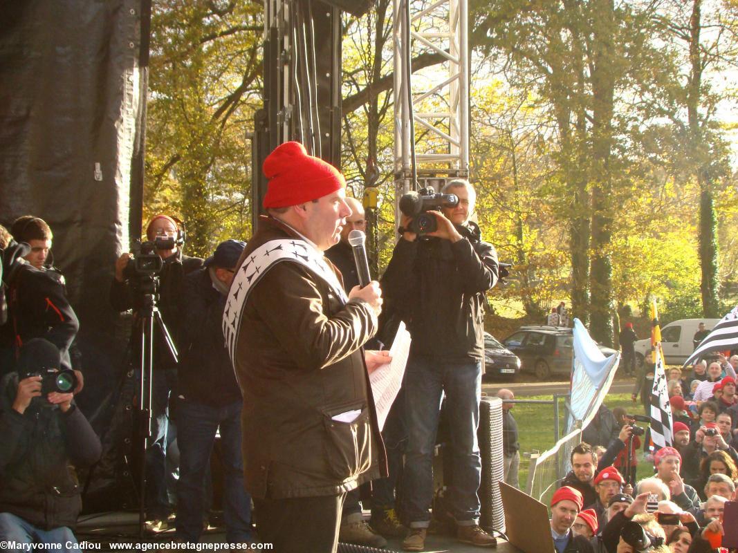 - Christian Troadec fait son discours à Karaez le 30 nov. 2013. 15 h 15. Pile à l'heure. Bonnets Rouges, Karaez 30 nov. 2013.