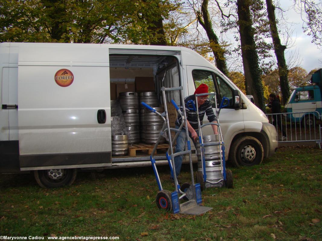 - Derrière le bar on s'affaire à livrer les fûts de bière. Bonnets Rouges, Karaez 30 nov. 2013.