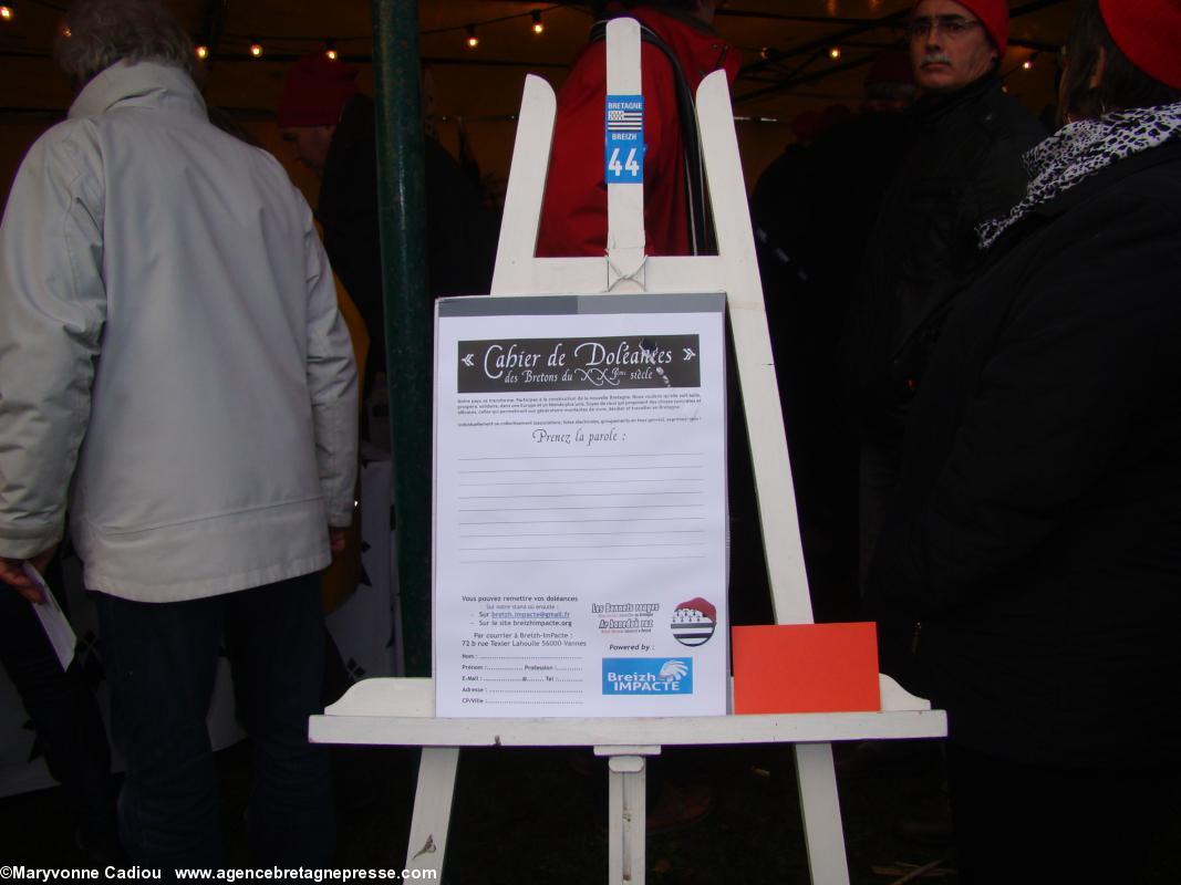 - On remplit activement le cahier de doléances des Bretons du XXIe siècle. Bonnets Rouges, Karaez 30 nov. 2013.