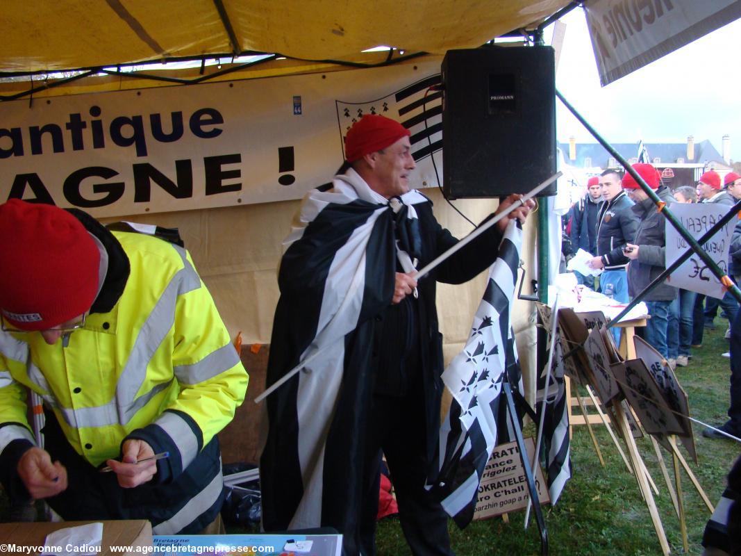 - Mais Rachid Bara, dit Gilles Évilaine, un des deux Baragouineurs nantais, a la bonne idée pour rectifier le tir ! Bonnets Rouges, Karaez 30 nov. 2013.