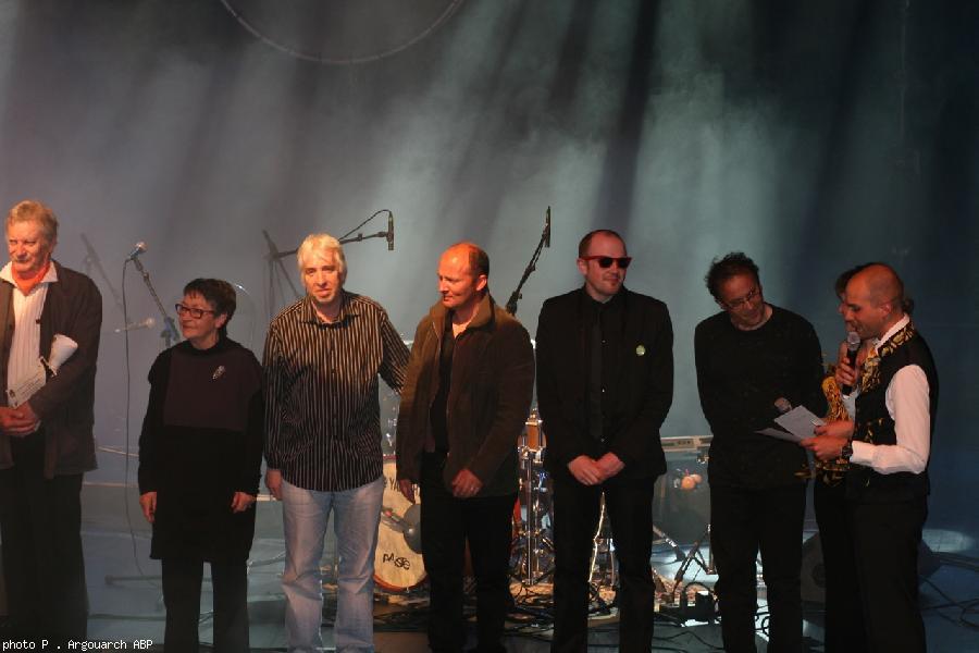 Les lauréats du grand prix du disque 2009 : Rotor Jambreks (prix jeune artiste 2009) ; Andrea Ar Gouilh (prix coup de coeur 2009) ; Startijenn (prix musique bretonne 2009) et Red Cardell (grand prix du disque 2009) avec Louise Ebrel.