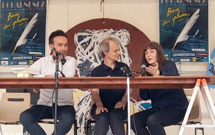 Yoann Barbereau, André Markowicz et Françoise Morvan au salon du livre de Douarnenez
