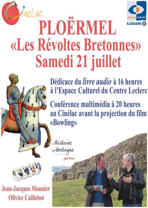 J.-J. Monnier et O. Caillebot seront à Ploërmel samedi 21 juillet pour leur livre Histoire de Bretagne pour tous avec 4 CD. En dédicaces puis en conférence, avant le film Bowling. 4 ou 7 euros à Cinélac