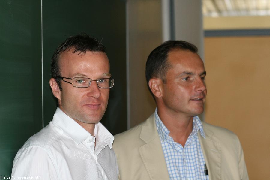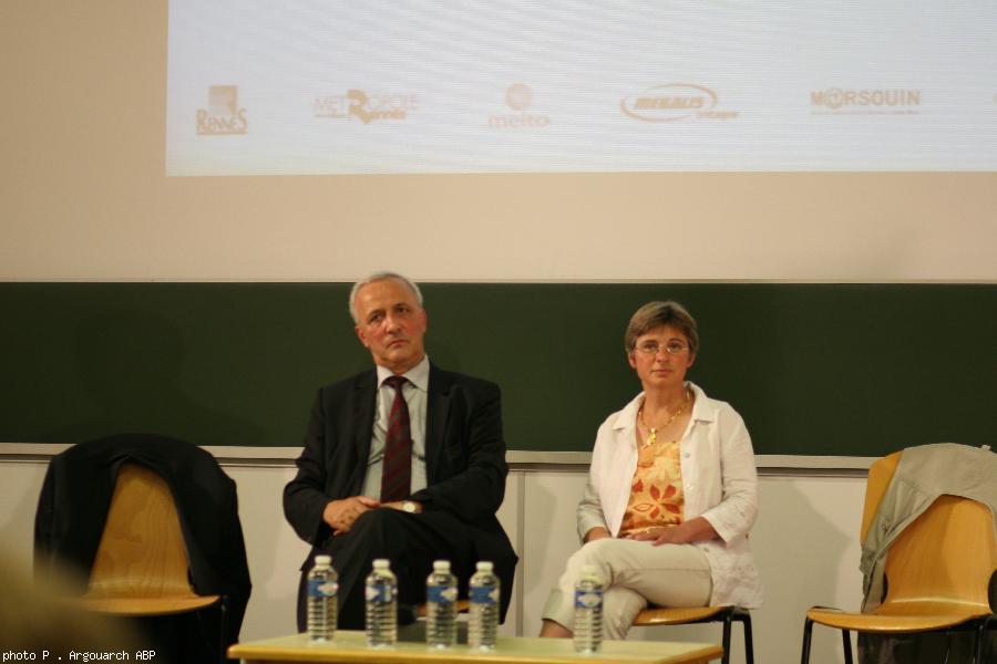 - Le maire de Rennes Daniel Delaveau et Isabelle Cadoret- doyen de la Fac de Sciences Economiques de Rennes -- co-hôtes des journées d\'été des TIC
